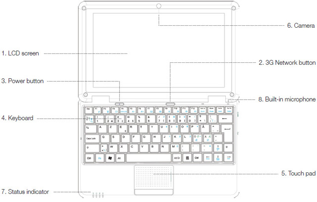 - The netbook will emit heat to the surface of the machine during operating or charging, do not put the netbook on your knees